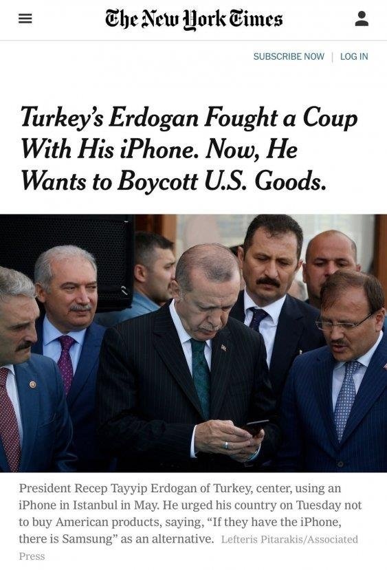 ABD’nin Türkiye’ye yönelik başlattığı ekonomik saldırının ardından Başkan Recep Tayyip Erdoğan’ın “ABD’nin elektronik ürünlerine boykot uygulayacağız” sözleriyle Apple’ın amiral gemisi iPhone karşı yaptığı boykot çağrısı ABD basınında geniş yankı buldu.