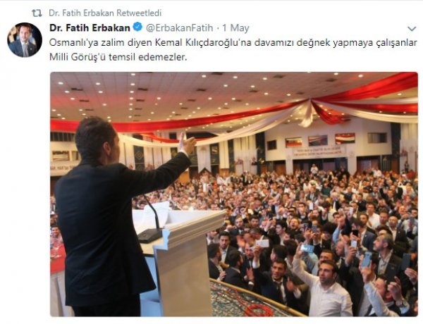 Eski başbakanlardan merhum Necmettin Erbakan Hoca’ın oğlu Fatih Erbakan, dün akşam Cumhuriyet Halk Partisi (CHP) Genel Başkanı Kemal Kılıçdaroğlu’na gönderme yaptığı bir tweet’ini tekrar yayınlayarak Kılıçdaroğlu’na seçim sonucunun cevabını verdi.