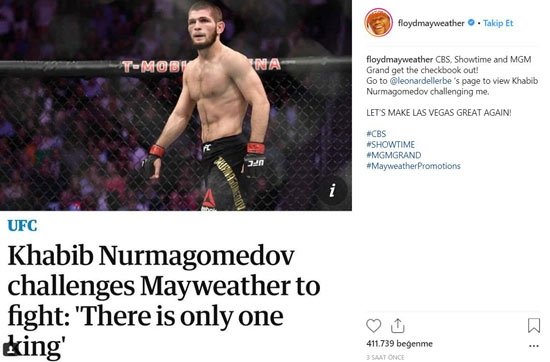 Boksör Floyd Mayweather, Khabib Nurmagomedov’un meydan okumasını kabul etti. İkilinin 2019’un ilk aylarında karşı karşıya gelmesi bekleniyor.