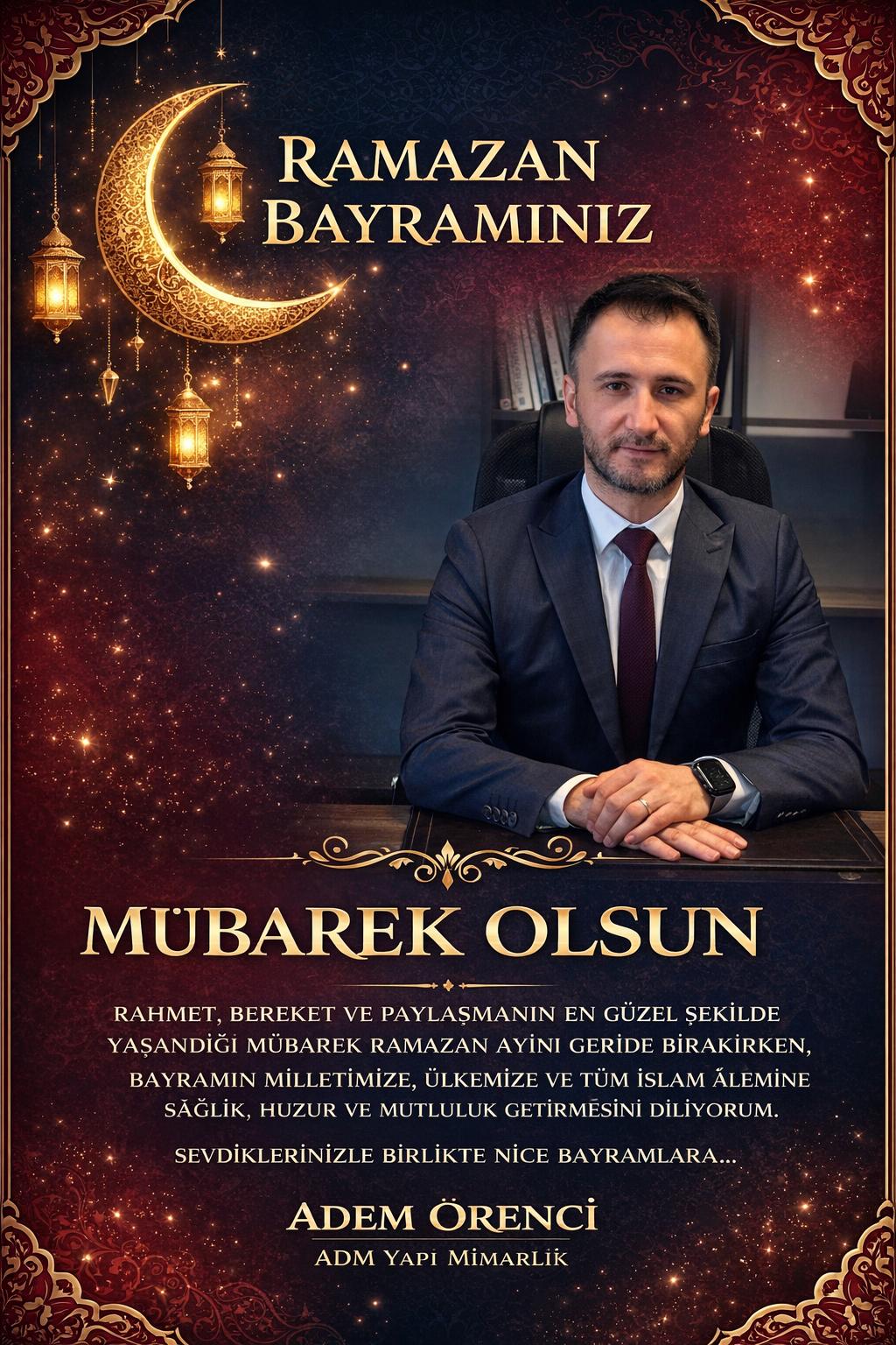 Adem ÖRENCİ – ADM YAPI MİMARLIK: Dostlukların pekiştiği, sevinçlerin çoğaldığı, hayallerin gerçek olduğu, belki durgun, belki yorgun, yine de mutlu, yine de umutlu sevgi dolu nice bayramlara. Ramazan Bayramınızı tebrik ederim…