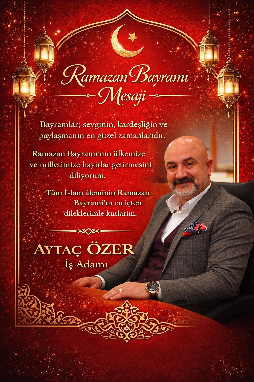 Aytaç ÖZER – İŞ ADAMI: Bayramlar; dargınlıkların unutulduğu, incinen gönüllerin tamir edildiği, coşkuyu ve sevinci hep birlikte yaşayabildiğimiz en özel zamanlardır. Ramazan Bayramı’nız kutlu olsun.