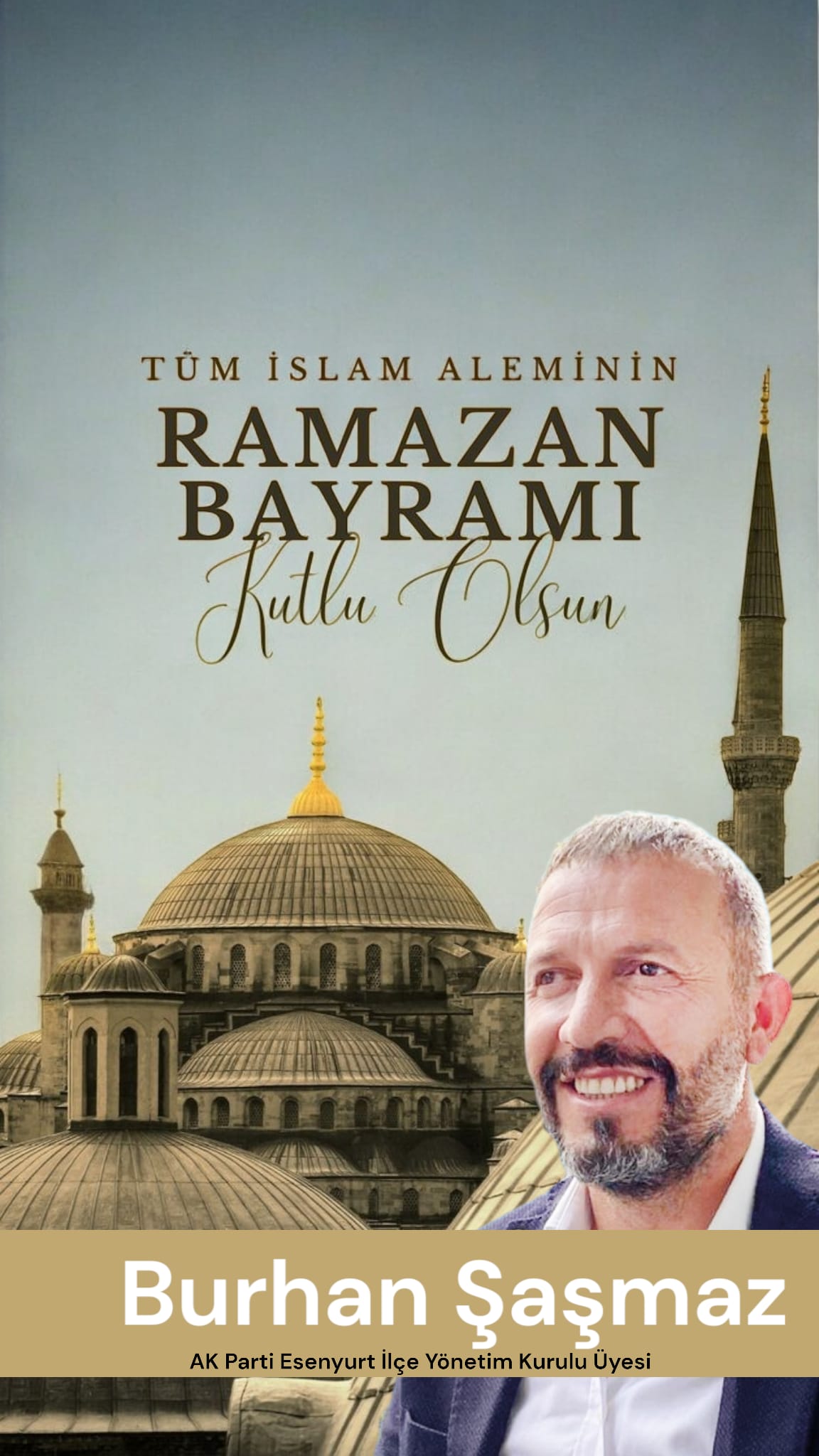 Burhan ŞAŞMAZ – AK Parti Esenyurt İlçe Yönetim Kurulu Üyesi: Ramazan Bayramı’nın bütün evlere, gönüllere, huzur ve bereket getirmesini Cenabı Allah’tan niyaz ediyorum.