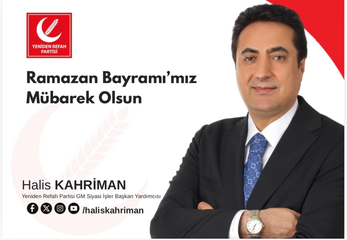 Halis KAHRİMAN – Yeniden Refah Partisi GM Siyasi İşler Başkan Yardımcısı: Dua kapılarının ağzına kadar açık, bela ve kötülüklerin arındırıldığı bu güzel günün hayırlara vesile olmasını dilerim. Ramazan Bayramınız kutlu olsun.