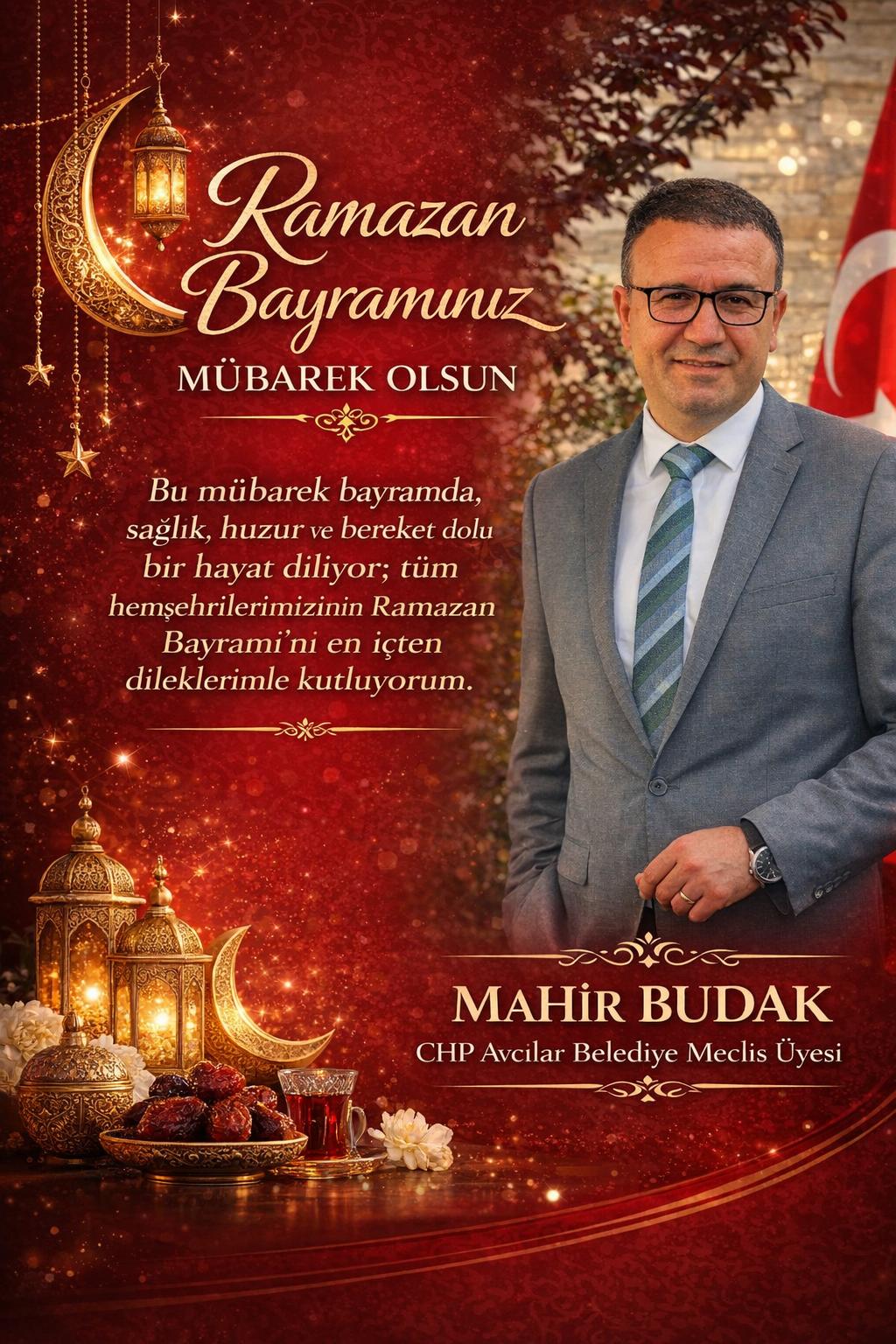 Mahir BUDAK – CHP Avcılar Belediye Meclis Üyesi: Yüreklerinizin neşeyle dolu olduğu, gönüllerinizi ferahlatacak bir bayram geçirmenizi dilerim.