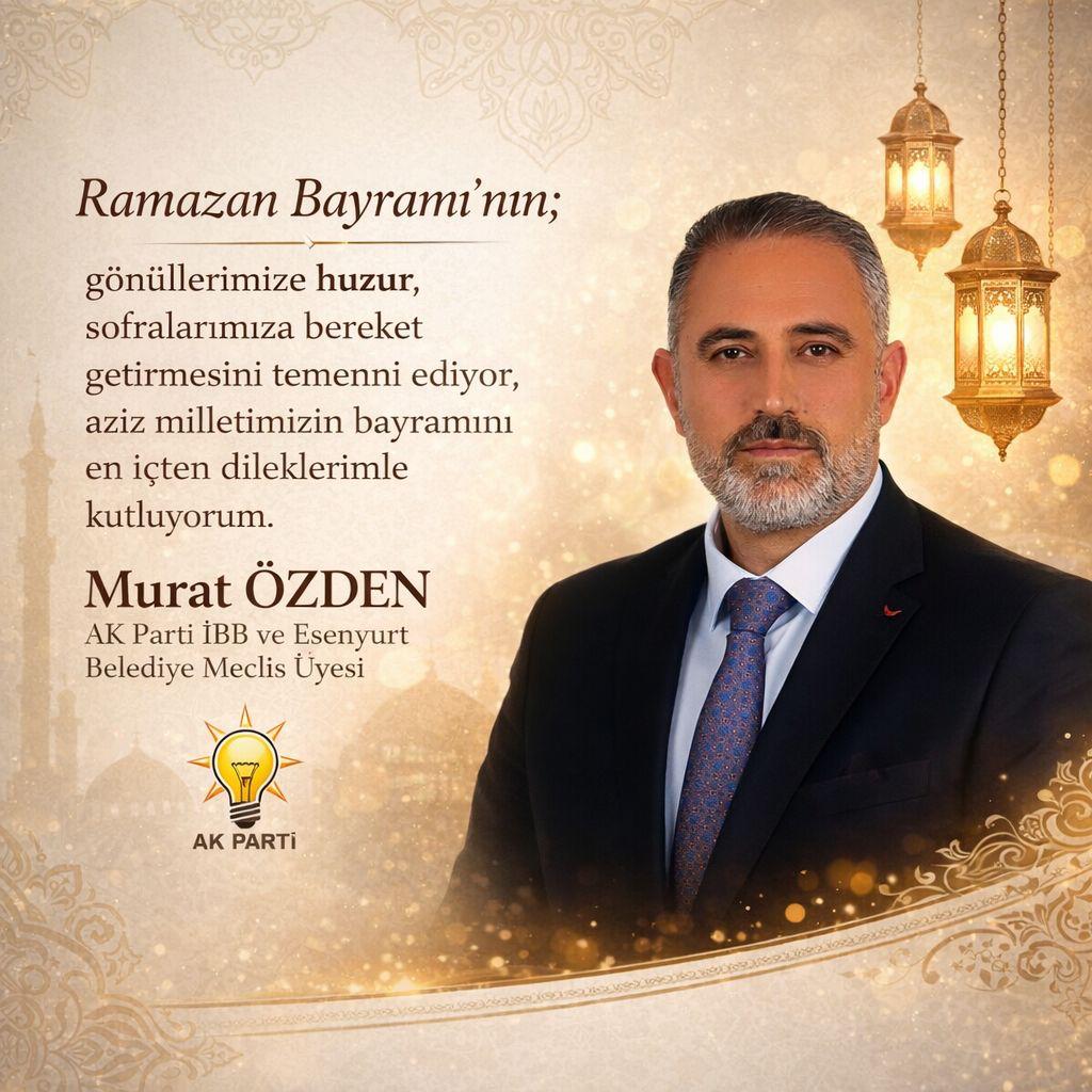 Murat ÖZDEN – AK Parti İBB ve Esenyurt Belediye Meclis Üyesi: Zamana ve mekana sığmayan bir bereketle bereketlenmek ve bağışlanmış olmanın o şerefli makamına erişmiş olmak temennisiyle Bayramınız mübarek olsun…