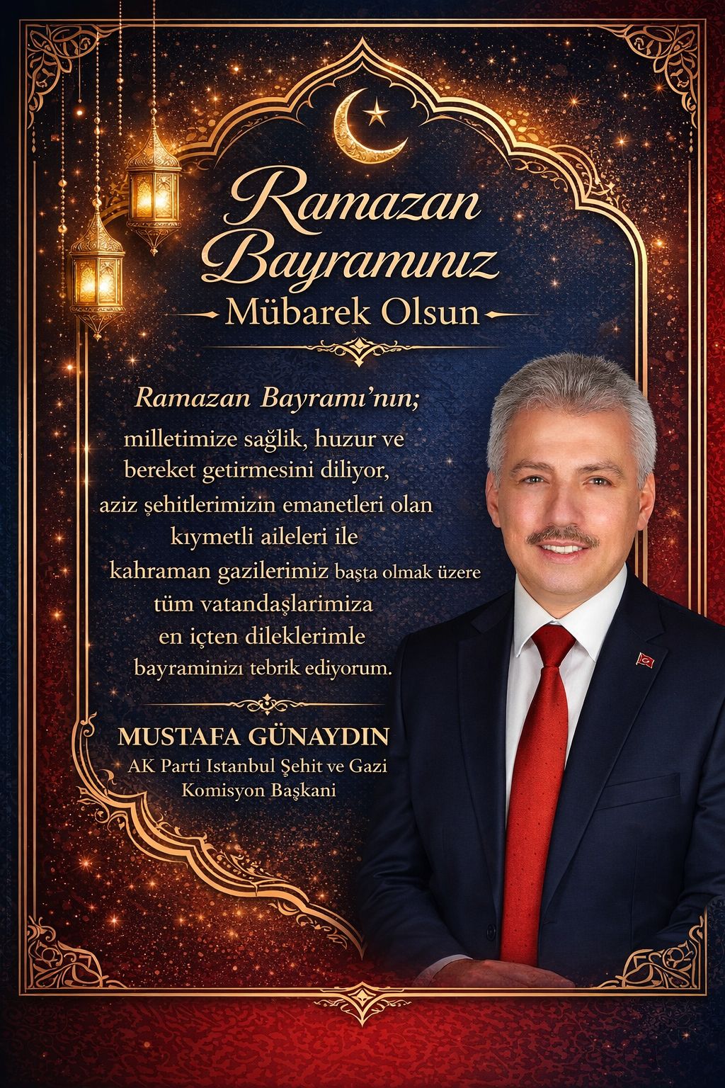 Mustafa GÜNAYDIN – AK Parti İstanbul Şehit ve Gazi Komisyon Başkanı: Güzellik, birlik, beraberlik, dolu, her zaman bir öncekinden daha güzel ve mutlu bir Ramazan Bayramı diliyorum…