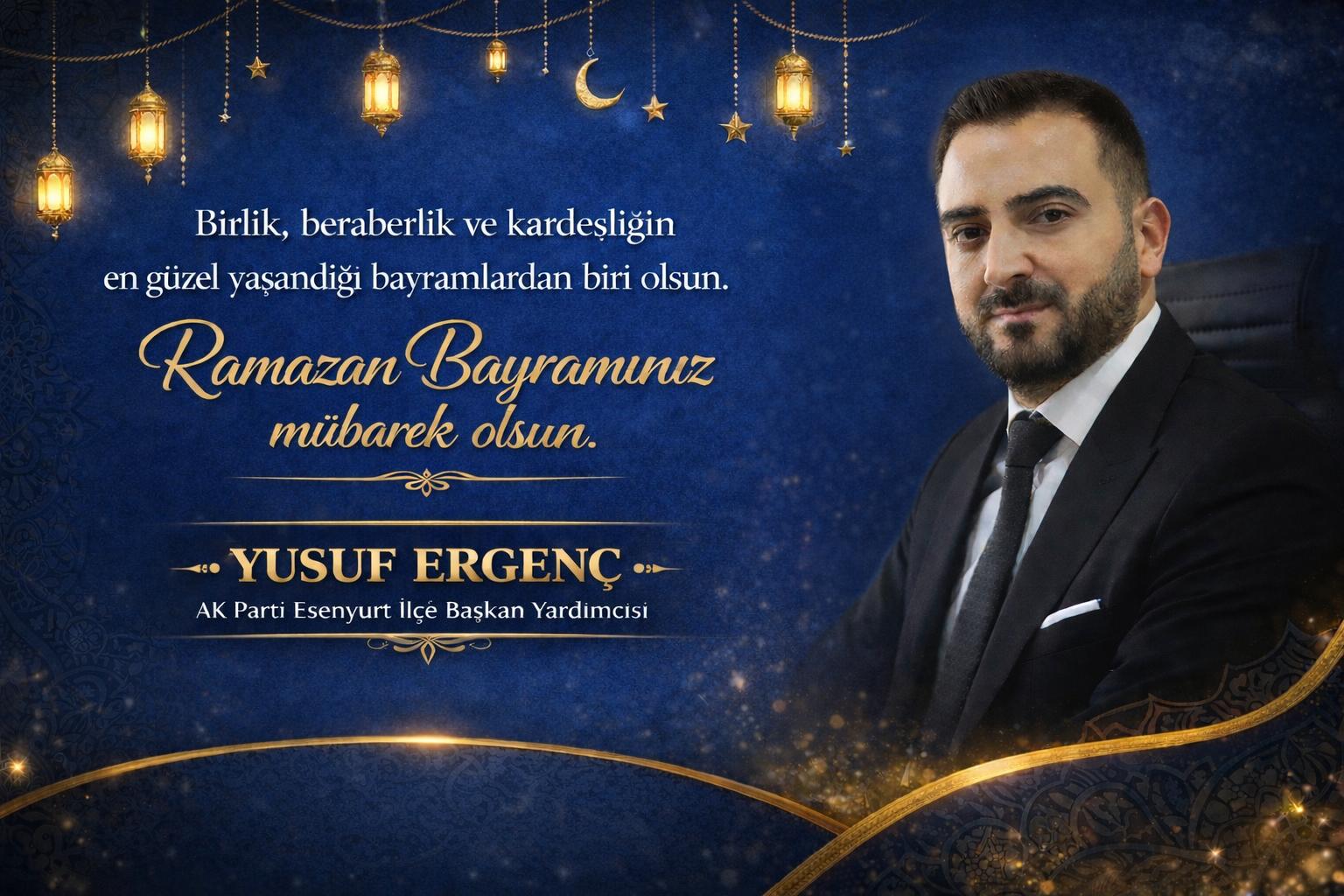 Yusuf ERGENÇ – AK Parti Esenyurt İlçe Başkan Yardımcısı: Bir avuç dua, bir kucak sevgi, sıcak bir mesaj, kapatır mesafeleri birleştirir gönülleri. Kalbiniz nur, haneniz huzur dolsun. Bayramınız Mübarek olsun…