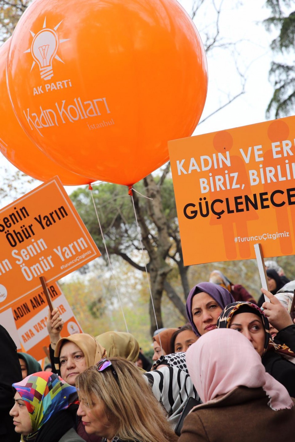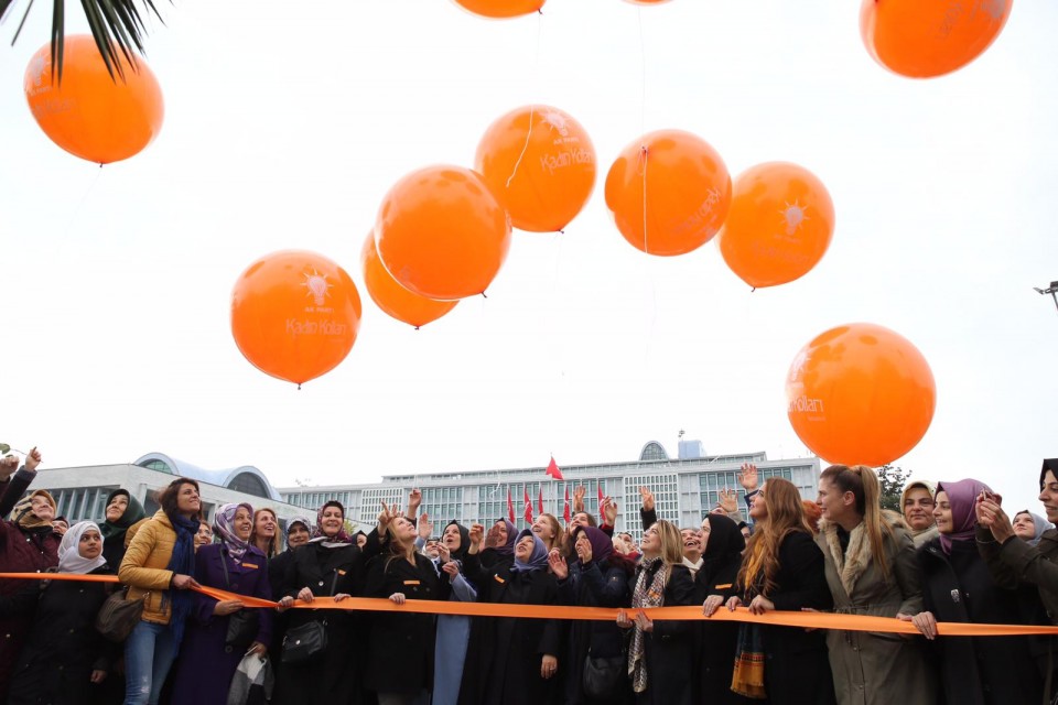Program sonunda Turuncu çizginin ardında Kadına Yönelik Şiddete Hayır diyerek AK Kadınlar ellerindeki balonları gökyüzüne uçurdular.