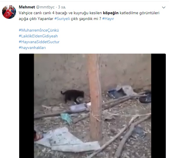 “Küçük köpeğin ayaklarını Suriyeliler kesti” diye iddia edilen görüntülerde, katledilen köpeğe benzer bir yavruya saldıran çocuklar olduğu görüldü. Fakat görüntünün 6-7 ay önce Ürdün’de yaşanmış bir olay olduğu gün yüzüne çıktı.